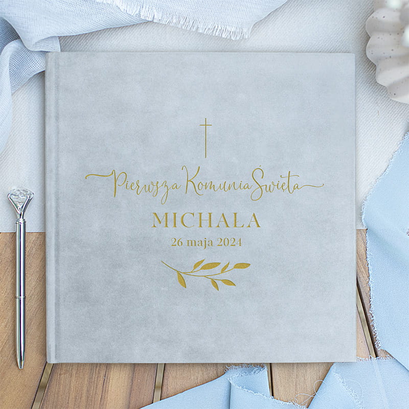 Ekskluzywny Welurowy Album na Komunię Świętą to elegancka i ponadczasowa pamiątka, która pozwoli zachować najpiękniejsze wspomnienia z tego wyjątkowego dnia. Miękka, aksamitna w dotyku okładka dostępna jest w kilku eleganckich kolorach, co nadaje albumowi uroczystego charakteru. Dodatkowo, personalizacja obejmująca imię dziecka, datę uroczystości oraz dedykację sprawia, że każdy egzemplarz jest unikalny i wyjątkowy.