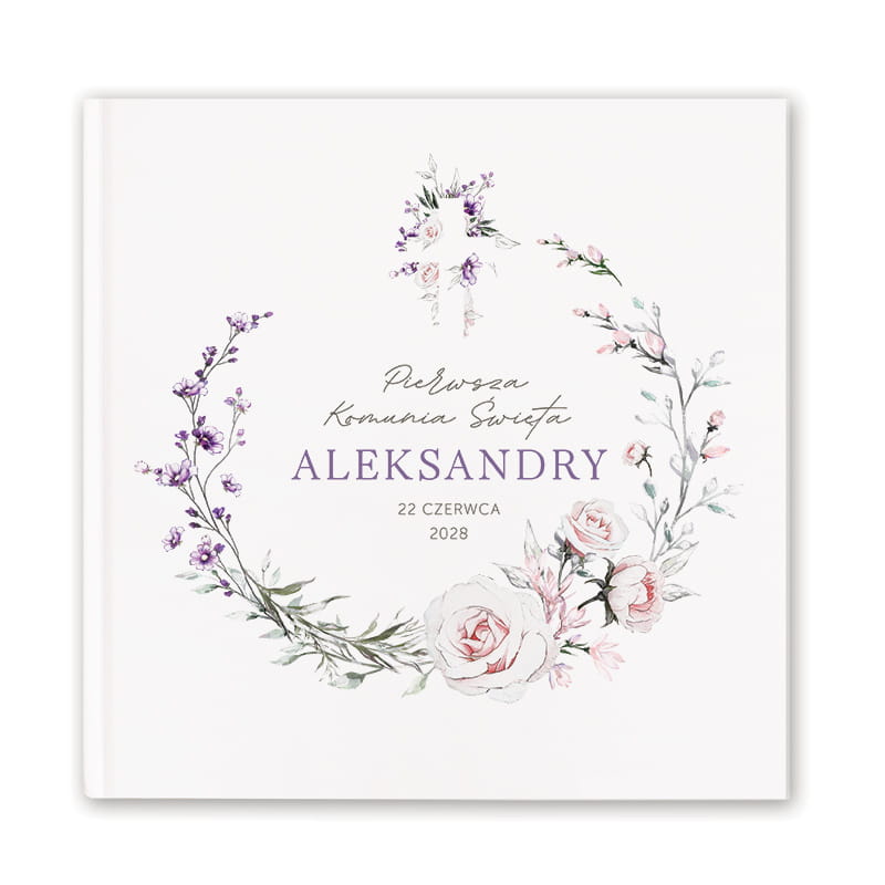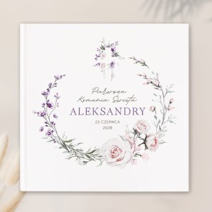 Elegancka i subtelna Księga Pamiątkowa na Komunię Świętą z kolekcji LiMarte to wyjątkowa pamiątka, która pozwoli zachować najpiękniejsze wspomnienia z tego niezwykłego dnia. Personalizowana okładka z imieniem dziecka i datą uroczystości ozdobiona jest delikatnymi kwiatami w pudrowych odcieniach, które nadają całości wyjątkowego uroku. Sztywna, biała oprawa oraz staranne wykonanie sprawiają, że księga będzie piękną pamiątką na długie lata.