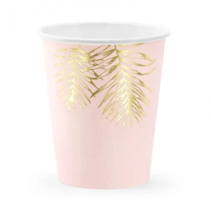KUBECZKI papierowe jasnoróżowe Złote Liście 6szt