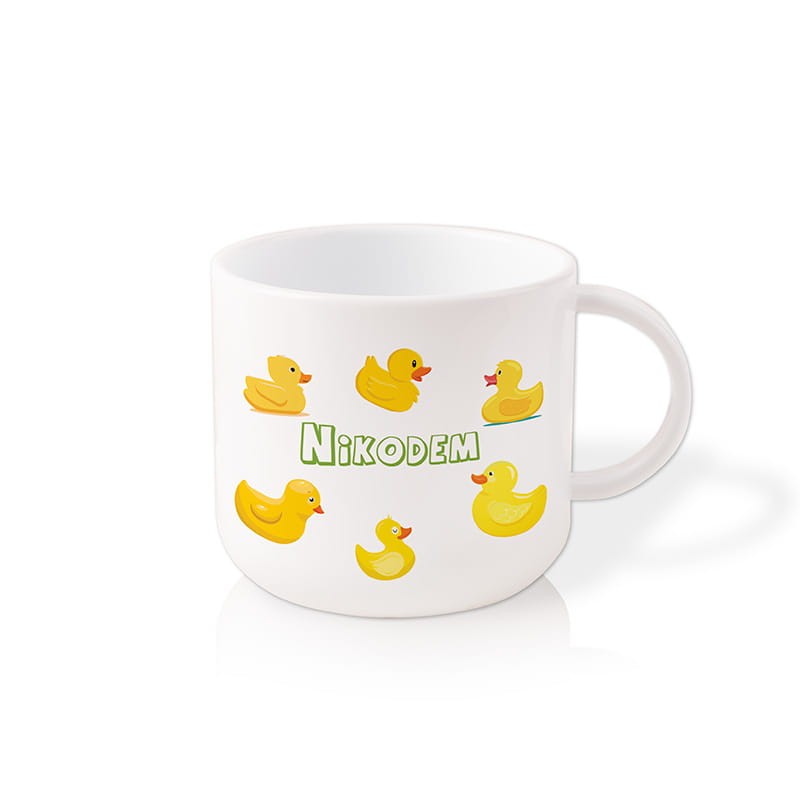 Kolorowy kubek z kaczuszkami i imieniem to idealny prezent dla dziecka. Lekki, bezpieczny i pełen uroku – świetny do codziennego użytkowania. Personalizacja sprawia, że staje się wyjątkowy i jedyny w swoim rodzaju.