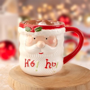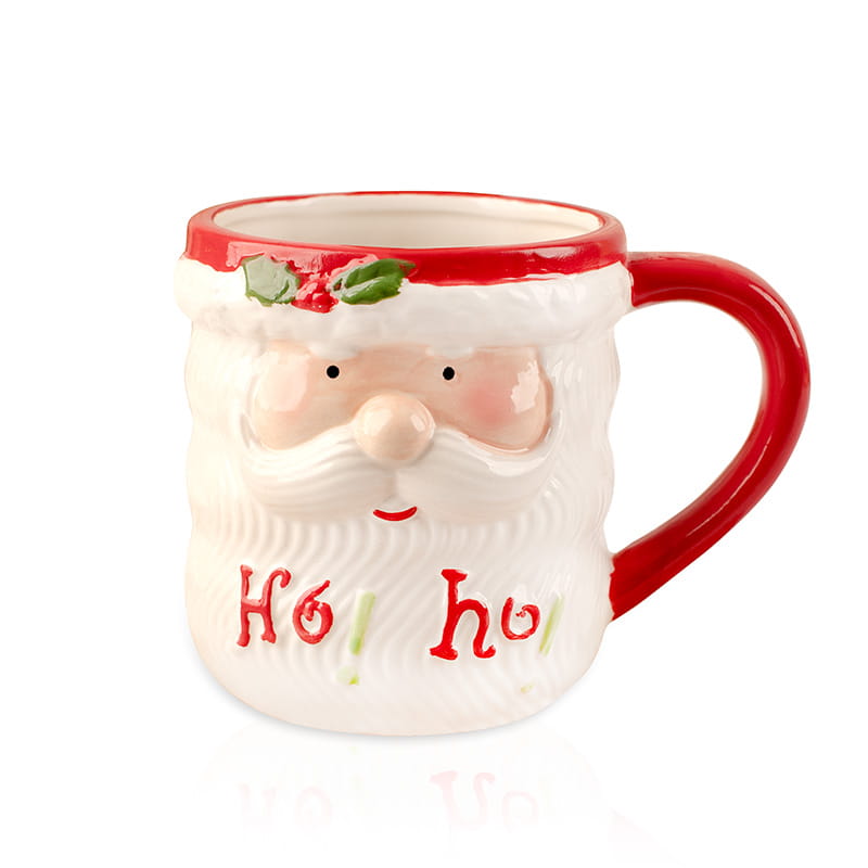 Kształt kubka odwzorowuje sympatyczną twarz Mikołaja z wypukłymi elementami, takimi jak nos, wąsy i policzki. Czerwony uchwyt oraz fragment czapki z ostrokrzewem dodają całości koloru i świątecznego akcentu. Na brodzie Mikołaja znajduje się napis „Ho! Ho!”. Całość wykonana jest z wysokiej jakości ceramiki.