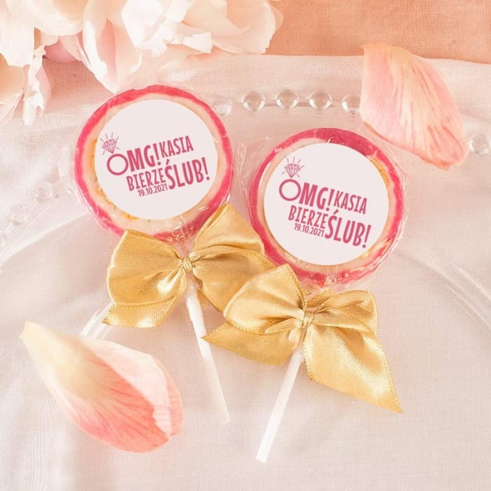 Słodki upominek dla przyjaciółek na Wieczór Panieński w postaci smacznych lizaków owocowych. Do lizaków dołączone są samoprzylepne etykiety personalizowane. Lizaki będą ciekawie prezentować się jako dekoracja stołu podczas Wieczoru Panieńskiego.