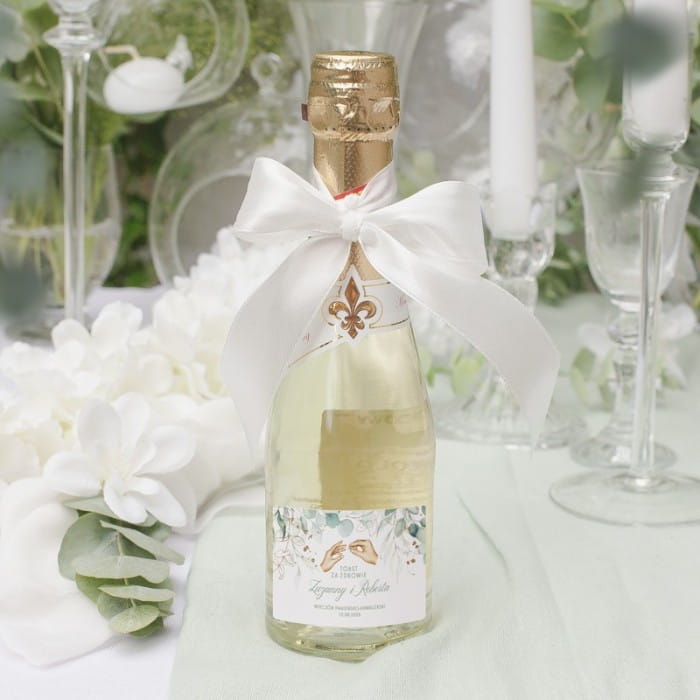 - cena dotyczy 1 sztuki wina musującego, etykiety i wstążki w kolorze białym do samodzielnego umieszczenia na butelce,