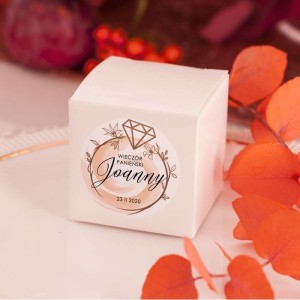 Podziękuj swoim najbliższym za wspólnie spędzony Wieczór Panieński! Urocze, kwadratowe pudełeczko świetnie sprawdzi się podczas wręczania gościom drobnych upominków, a piękna, personalizowana etykieta z kolekcji „Powiedziałam Tak!” przyciągnie uwagę każdej z Pań!