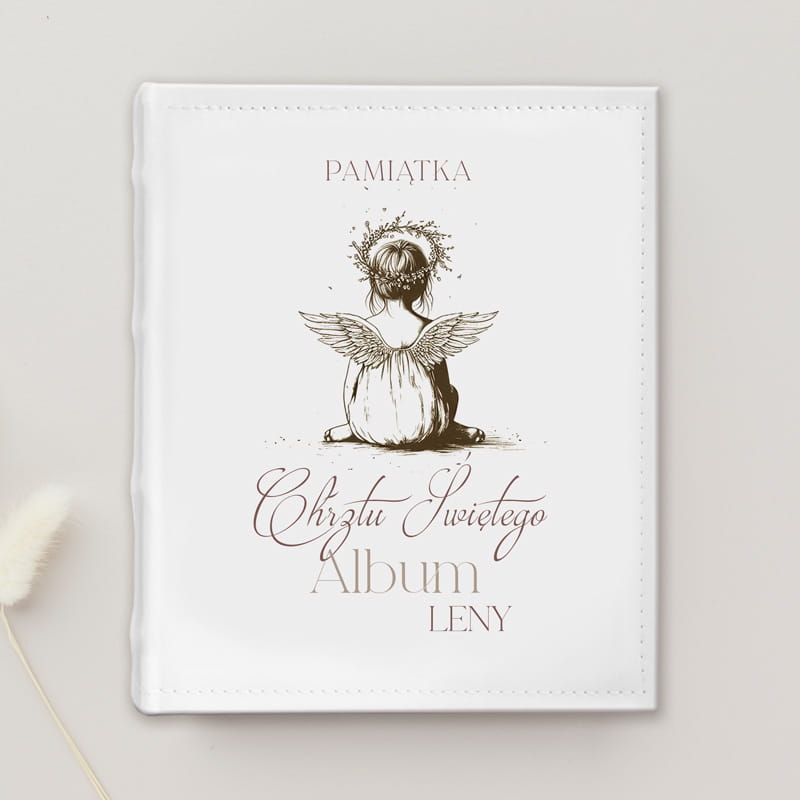 Album wspomnień z okazji Chrztu Świętego to wyjątkowa pamiątka, stworzona z myślą o dziecku oraz jego najbliższych. Możliwość personalizacji albumu poprzez dodanie imienia maluszka sprawia, że staje się on niepowtarzalny i bardzo osobisty. Dzięki temu każdy egzemplarz jest jedyny w swoim rodzaju i nabiera szczególnej wartości sentymentalnej. To idealne miejsce, by zachować najważniejsze chwile z dnia Chrztu Świętego oraz wspomnienia rodzinnych spotkań. Album wyróżnia się minimalistyczną, jasną okładką, która nadaje mu elegancji i subtelności. Na okładce znajduje się delikatny nadruk aniołka, który symbolizuje ochronę i duchowy wymiar Chrztu. Grafika ta jest subtelna i dyskretna, co podkreśla wyjątkowy charakter albumu bez przytłaczania jego prostoty. Dzięki temu album świetnie komponuje się z różnymi stylami wnętrz i okazji.