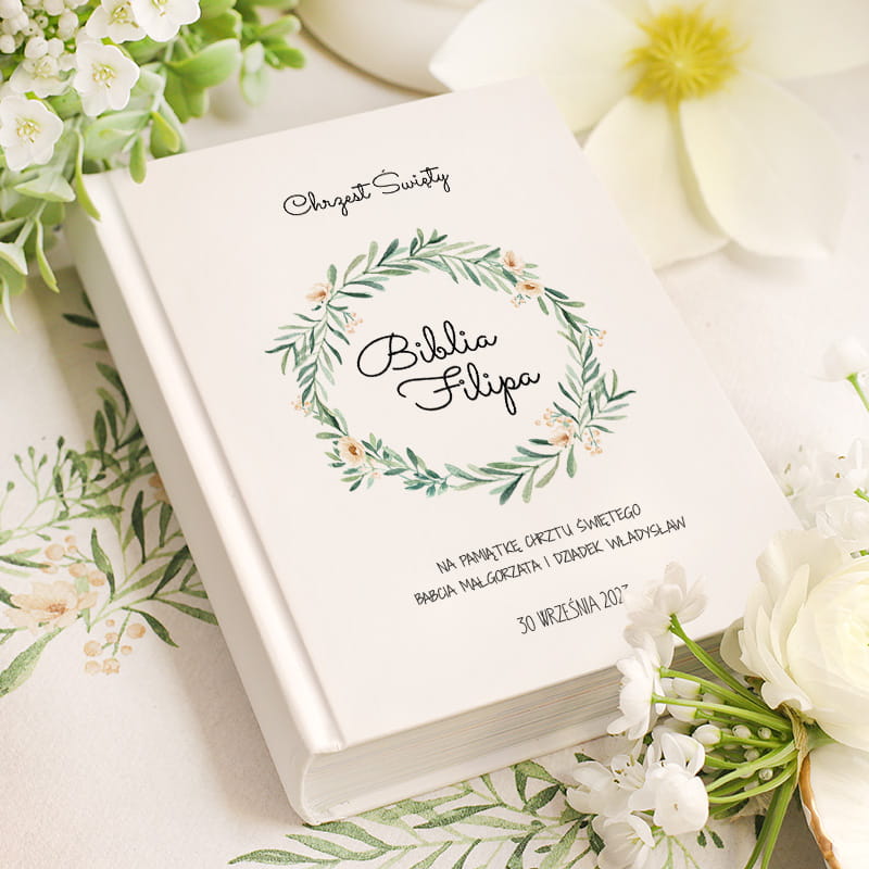 Biblia greenery to wyjątkowa pamiątka Chrztu Świętego, stworzona z myślą o dziecku i jego duchowej drodze.