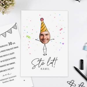 KARTKA urodzinowa ze zdjęciem twarzy zabawny prezent na urodziny