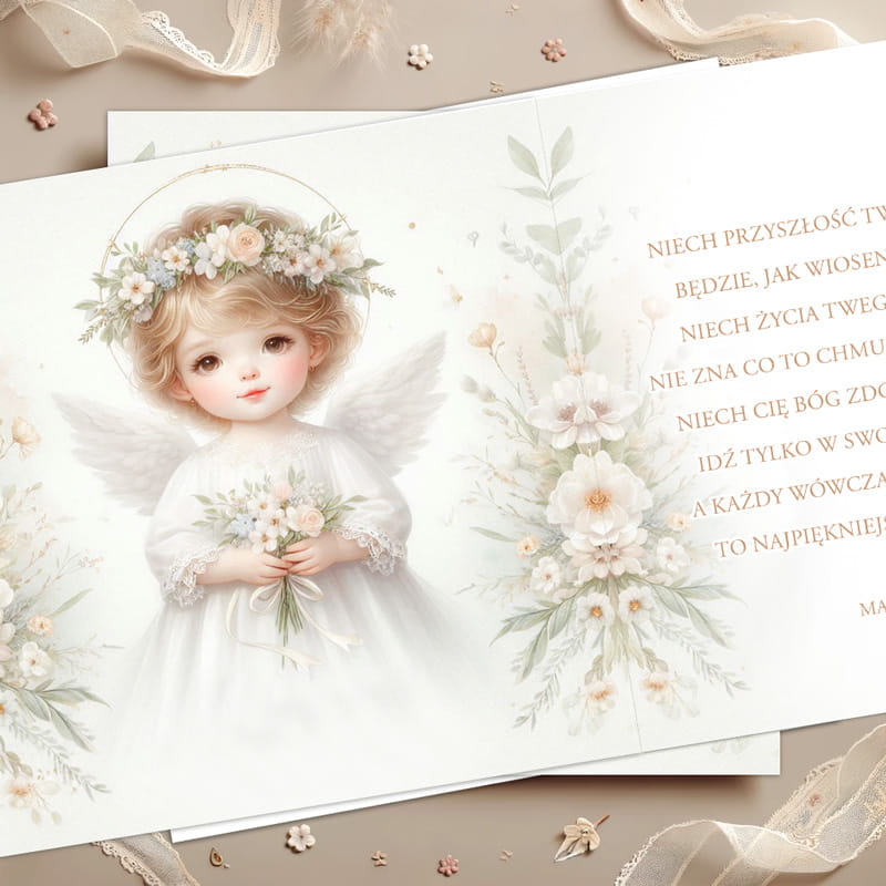 Kartka z życzeniami to wyjątkowa pamiątka Chrztu Świętego dziewczynki, która podkreśla doniosłość tego dnia. Możliwość personalizacji sprawia, że staje się unikalnym upominkiem – można umieścić na niej imię dziecka, datę uroczystości oraz podpis osoby składającej życzenia. Delikatna i elegancka grafika idealnie wpisuje się w charakter sakramentalnego wydarzenia.