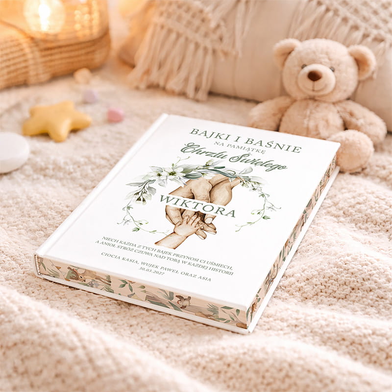 Książka z bajkami na Chrzest z imieniem dziecka to doskonały prezent od chrzestnych, dziadków czy bliskich, którzy chcą podarować coś trwałego i pełnego znaczenia. Personalizacja na okładce czyni książkę jedyną w swoim rodzaju – pamiątką, do której będzie się wracać przez całe życie. Każdy detal został zaprojektowany z myślą o tym, by podkreślić wagę i piękno tej wyjątkowej chwili.