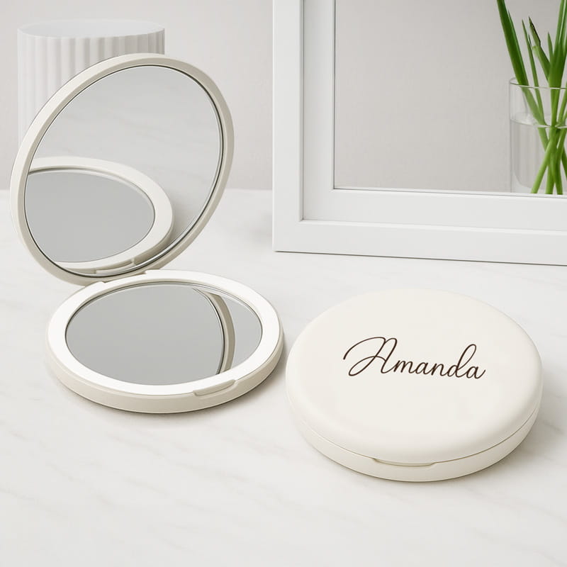 Stylowe i praktyczne - właśnie takie jest lusterko LED z imieniem, które szybko stanie się ulubionym dodatkiem w każdej torebce. Dzięki kompaktowej formie i eleganckiemu wyglądowi sprawia, że poprawki makijażu można wykonać w każdym miejscu i o każdej porze dnia. To drobiazg, który łączy funkcjonalność z delikatnym akcentem osobistym, dlatego idealnie nadaje się na prezent dla bliskiej osoby.