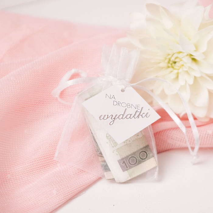 Zawiera starannie dobrane elementy, które odnoszą się do wyjątkowych momentów z dzieciństwa. Całość można spersonalizować – na opakowaniu umieszczane jest imię dziecka, data Chrztu Świętego oraz podpis osoby wręczającej, co nadaje prezentowi osobisty charakter. W środku znajduje się biały woreczek z organzy z napisem „na drobne wydatki”, idealny na włożenie pieniędzy w formie symbolicznego prezentu. Do zestawu dołączona jest również ramka na zdjęcie „na pamiątkę” – wystarczy włożyć fotografię z uroczystości, by stworzyć wzruszającą pamiątkę. Drewniane pudełeczko na ząbki z grawerem to uroczy schowek na pierwsze mleczne ząbki. Białe skarpetki „na pierwszy kroczek” symbolizują pierwszy etap samodzielności dziecka. Biała spinka „na przyszłość” może posłużyć podczas kolejnych rodzinnych uroczystości. Mały słonik „na szczęście” to talizman przynoszący pozytywną energię i pomyślność. Z kolei świeczka w kształcie cyfry 1 w biało-srebrnej kolorystyce to akcent „na pierwsze urodzinki”.