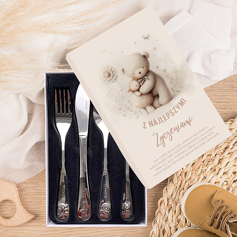 - sztućce z grawerowanym imieniem