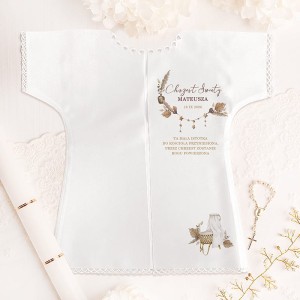 Motywy roślinne i subtelna kompozycja graficzna podkreślają symbolikę nowego życia i duchowego początku. Każdy szczegół od wzoru po personalizowany nadruk nadaje szatce wyjątkowy charakter. Taka pamiątka będzie budzić emocje również po latach, stając się częścią rodzinnych wspomnień. Szatka łączy tradycję sakramentu z indywidualnym podejściem i współczesną estetyką. To nie tylko liturgiczny dodatek, ale również piękna, osobista forma wyrażenia miłości i troski.