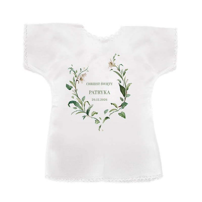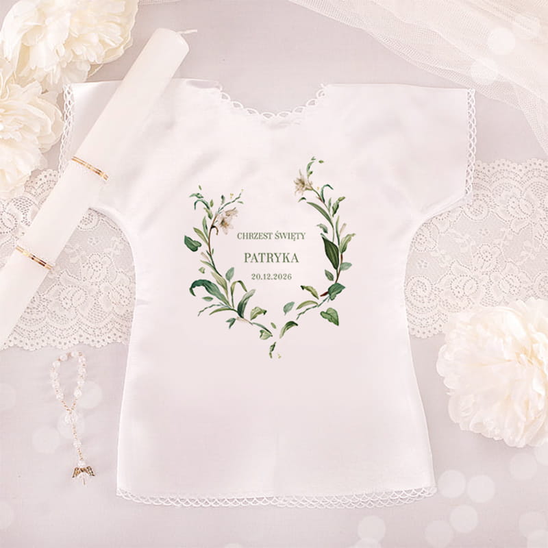 Personalizowana szatka z motywem delikatnych lilii idealnie wpisuje się w atmosferę chrześcijańskiej tradycji,. Personalizacja sprawia, że każda szatka jest jedyna w swoim rodzaju i stworzona specjalnie dla maluszka, który przyjmuje Sakrament Chrztu Świętego. To także wyraz osobistego podejścia do uroczystości i dbałości o każdy detal ważnego sakramentu.
