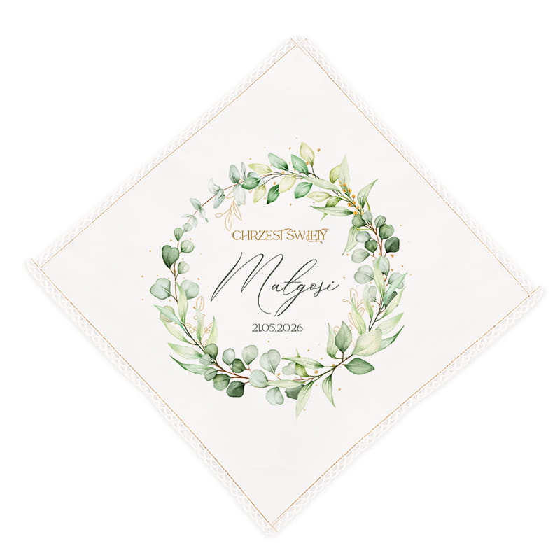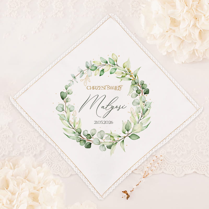 SZATKA personalizowana na Chrzest Święty Zielony Wianek