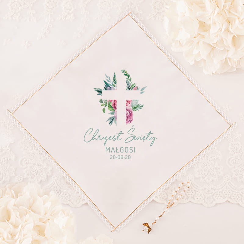 Szatka na Chrzest z motywem fuksjowego jaskra to delikatny i znaczący element ceremonii, który można wzbogacić o imię dziecka i datę uroczystości. Spersonalizowane detale nadają jej niepowtarzalny, pamiątkowy charakter, który będzie cieszył przez długie lata. Kwiatowy wzór wprowadza lekkość i radość, doskonale oddając duchowy wymiar tego wyjątkowego wydarzenia. To wyjątkowy sposób na uczczenie Chrztu Świętego w osobistej i pełnej emocji formie.
