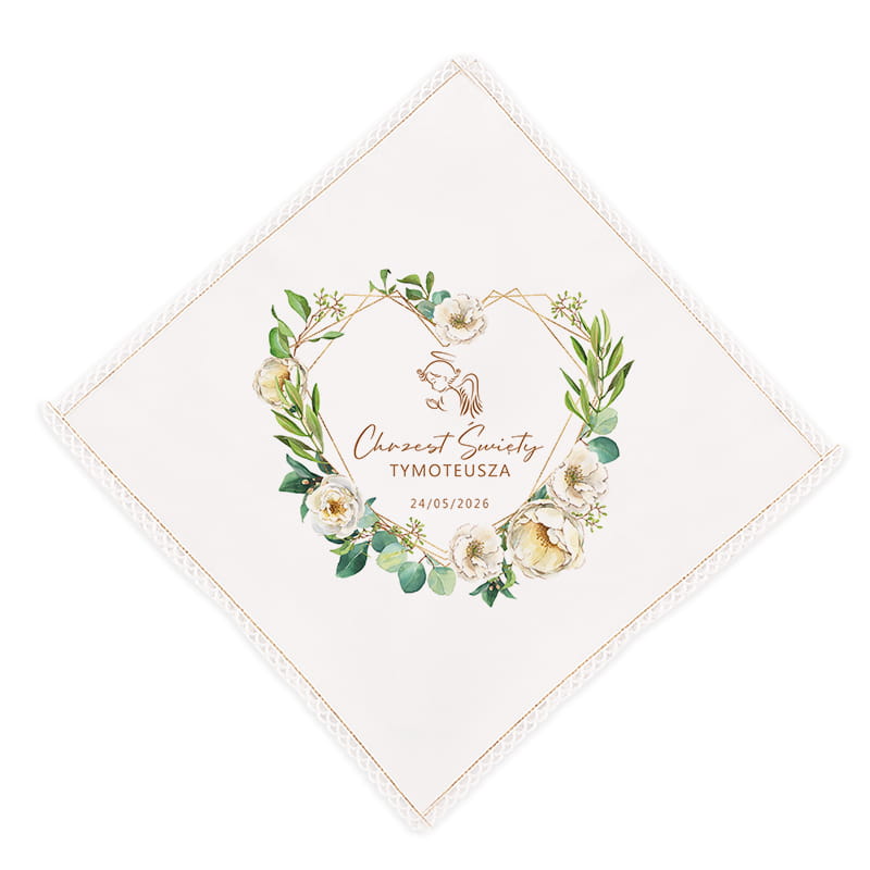 Szatka do Chrztu Świętego geometryczne serce w kształcie rombu to wyjątkowy dodatek do ceremonii, który można spersonalizować imieniem dziecka oraz datą uroczystości. Personalizacja sprawia, że staje się niepowtarzalną i osobistą pamiątką tego ważnego dnia. Geometryczny motyw serca symbolizuje miłość i duchową więź, idealnie wpisując się w charakter sakramentu. To subtelny akcent, który podkreśla wyjątkowość chwili i pozostaje z rodziną na lata.