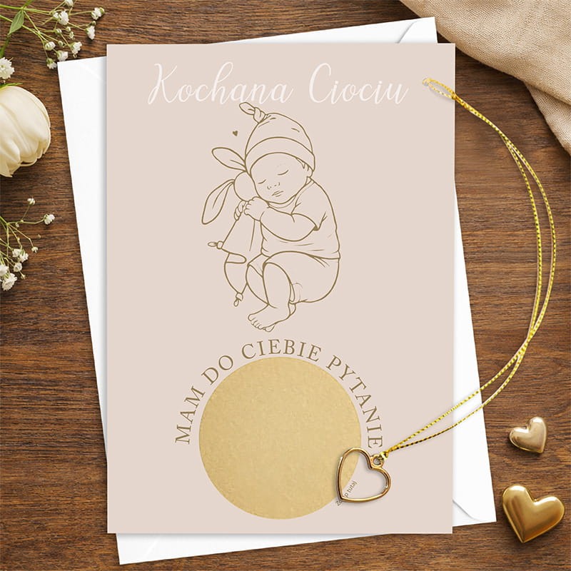 Motyw śpiącego chłopca nadaje zdrapce osobisty, wzruszający charakter. Element niespodzianki związany ze zdrapaniem warstwy sprawia, że emocje podczas wręczenia są jeszcze silniejsze. Takie zaproszenie staje się niezapomnianym przeżyciem dla każdej przyszłej mamy chrzestnej. Całość doskonale wpisuje się w uroczystości związane z chrztem. Scena śpiącego dziecka przytulającego misia budzi pozytywne skojarzenia i wzruszenie. Zdrapka zachęca do zatrzymania się na chwilę i celebracji tej ważnej życiowej chwili. To piękny sposób na zaproszenie do jednej z najważniejszych ról w życiu dziecka.