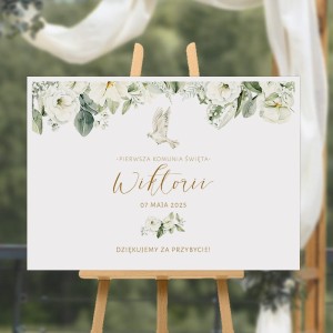PLAKAT Komunijny Personalizowany Białe Kwiaty 50x70 cm