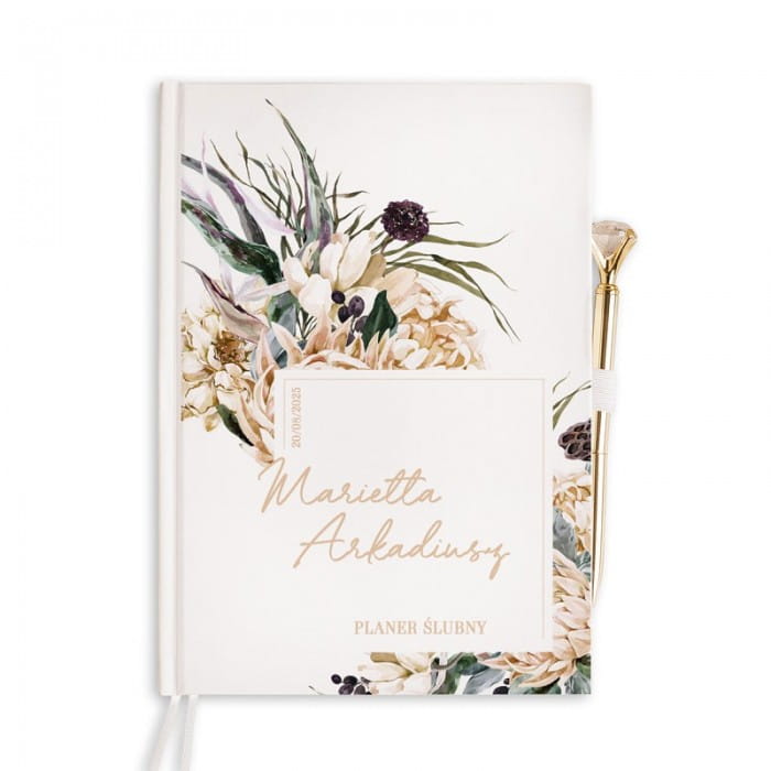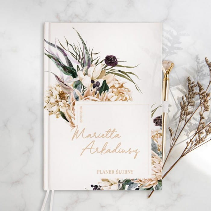 Planer ślubny zachwyca swoją estetyką i dopracowaniem w każdym, nawet najmniejszym szczególe. Dzięki niemu przygotowania do ślubu i wesela będą jeszcze przyjemniejsze. A przy tym macie pewność, że o niczym nie zapomnicie. Czy można chcieć więcej? Oczywiście! Za sprawą personalizacji planer ślubny zyskuje jeszcze bardziej szczególny charakter.