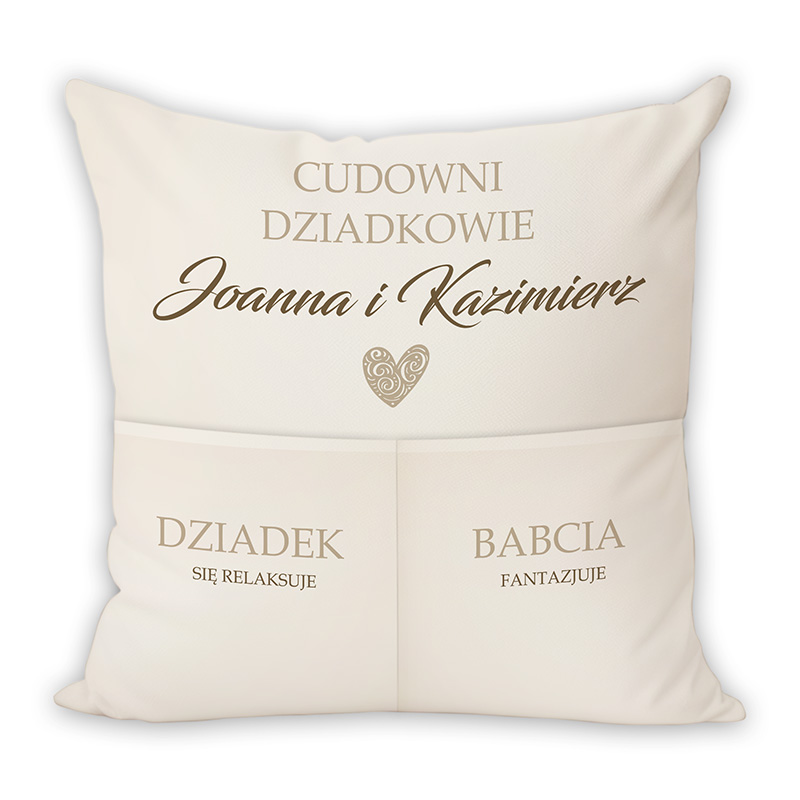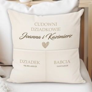 Miękka, elegancka poduszka z kieszeniami dla babci i dziadka to wyjątkowy sposób na wyrażenie wdzięczności i miłości. Spersonalizowany nadruk z imionami oraz zabawne napisy sprawiają, że prezent nabiera osobistego charakteru. Personalizowany prezent dla dziadków to praktyczny i ciepły upominek, który z pewnością wywoła uśmiech i stanie się piękną ozdobą każdego wnętrza.
