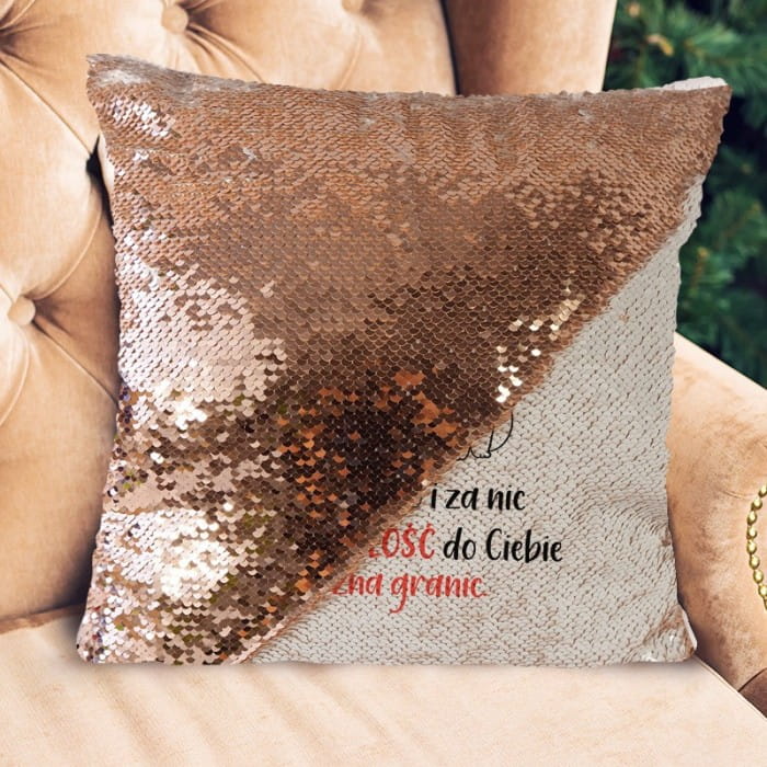 Poduszka personalizowana z cekinami na walentynki to pomysł na prezent w stylu glamour. Jeśli chcesz zabłysnąć przed Twoją drugą połówką, to koniecznie postaw na tak praktyczny i piękny dodatek.