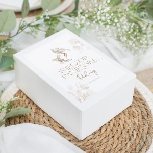 W zestawie znajduje się 10 sztuk pudełek na ciasto, które łatwo i szybko można złożyć. Wykonane są z solidnego i trwałego papieru, dzięki czemu pomieszczą spore porcje pysznych wypieków. Ich biała kolorystyka jest doskonałym tłem dla pięknych etykiet z delikatnymi grafikami w pastelowych odcieniach. To jednak personalizacja nadaje im niepowtarzalnego charakteru. Na naklejkach umieścimy imię przyszłej panny młodej i datę wydarzenia, dzięki czemu każde pudełko staje się jeszcze bardziej nieszablonowym upominkiem.