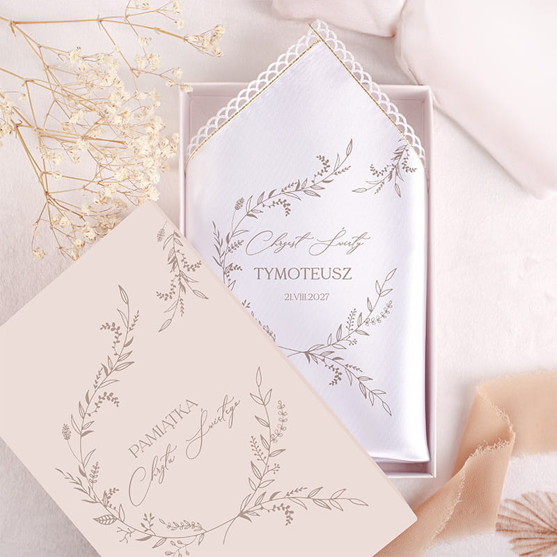 Stylowe pudełko na szatkę na chrzest święty to elegancka i trwała forma przechowywania jednego z najważniejszych symboli sakramentu. Zaprojektowane z myślą o rodzinach pragnących zachować pamiątkę chrztu świętego w nienaruszonym stanie. Minimalistyczny design i subtelny nadruk sprawiają, że pudełko doskonale sprawdzi się jako część prezentu na chrzciny dziecka.