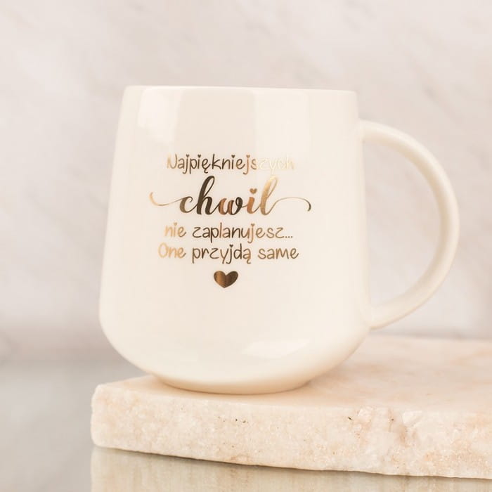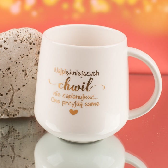 - Do wyboru jest kubek z napisem umieszczonym na zewnętrznej ściance: Siostrami nie zawsze trzeba się urodzić lub Najpiękniejszych chwil nie zaplanujesz ... one przyjdą same.