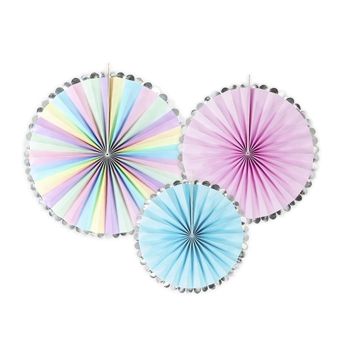 zestaw składa się z 3 papierowych rozet w pięknych kolorach - błękitnym, różowym i w mixie