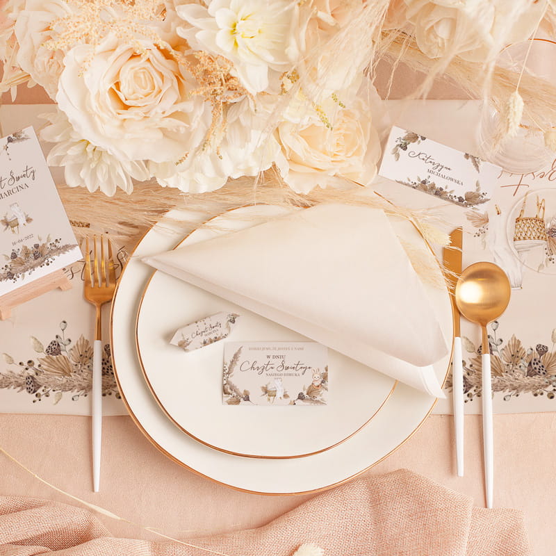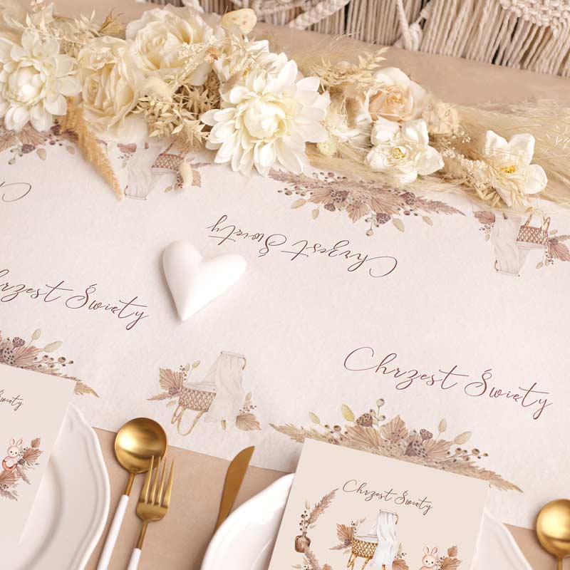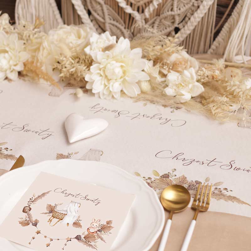 Stylowe serwetki w estetyce boho to doskonałe dopełnienie aranżacji stołu podczas chrztu świętego. Ich delikatna kolorystyka, subtelne ilustracje i elegancki nadruk tworzą spójną, uroczystą oprawę przyjęcia. Sprawdzą się zarówno przy domowym obiedzie, jak i większym przyjęciu w restauracji. Idealne dla gości, którzy cenią estetykę i dopracowane detale.