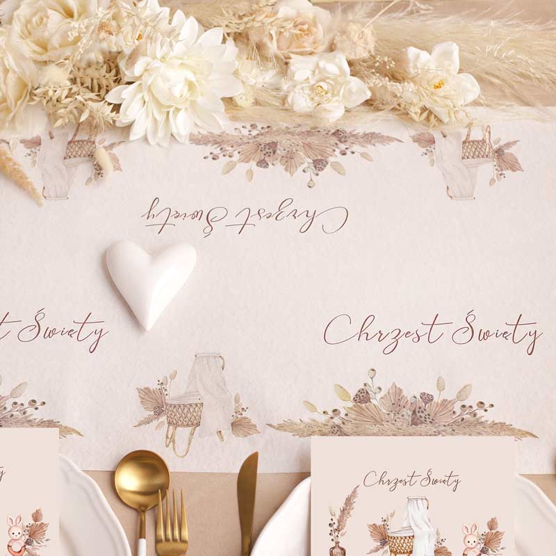 Produkt został stworzony z myślą o rodzinach organizujących przyjęcie z okazji chrztu, które ma być nie tylko eleganckie, ale i spójne estetycznie. Serwetki doskonale wpisują się w przyjęcia w stylu boho, rustykalnym lub naturalnym, a ich neutralna kolorystyka pasuje zarówno dla dziewczynki, jak i chłopca. To praktyczny element, który sprawdzi się przy stole z gośćmi w każdym wieku – od najbliższej rodziny po dalszych krewnych. Dzięki nim łatwo podkreślić charakter uroczystości bez przesady i z klasą.