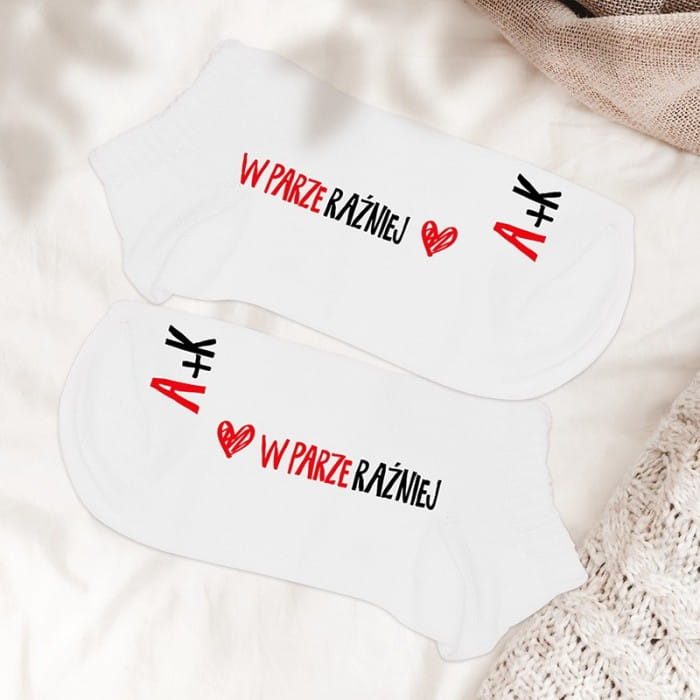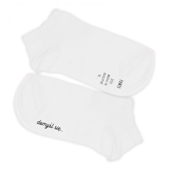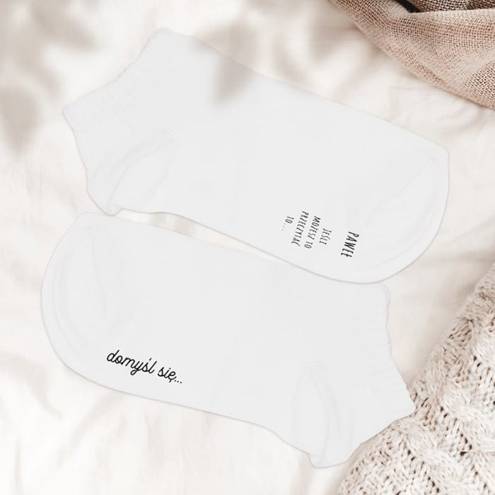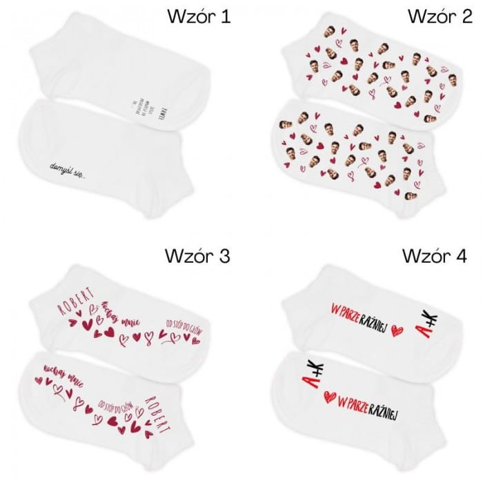- Aktualnie wysyłamy skarpetki za kostkę, nadruk znajduje się na boku skarpety powyżej kostki