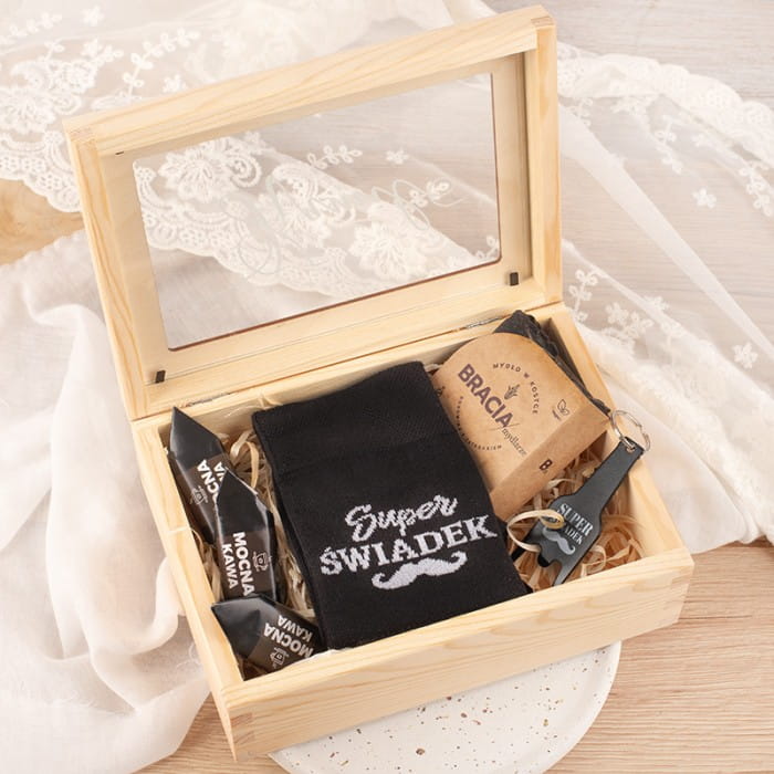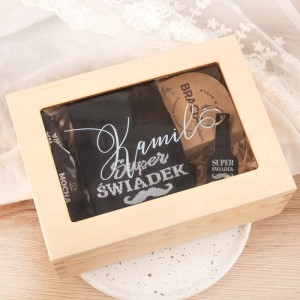 - Warto wspomnieć, że sama skrzynka jest fajnym gadżetem, który świadek będzie mógł wykorzystać jako miejsce do przechowywania. Imię na szklanej szybce sprawia, że prezent przybiera osobisty charakter.