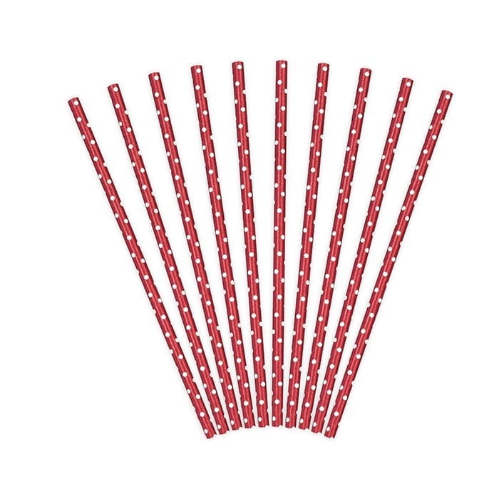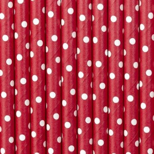 SŁOMKI papierowe w kropki CZERWONE 10szt