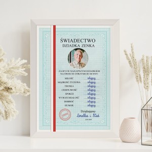 ŚWIADECTWO dla Dziadka Prezent ze Zdjęciem na Dzień Dziadka