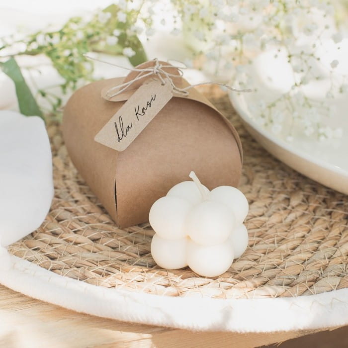 Świeczki sojowe mini bubble w kraftowych pudełeczkach z bilecikami 10szt