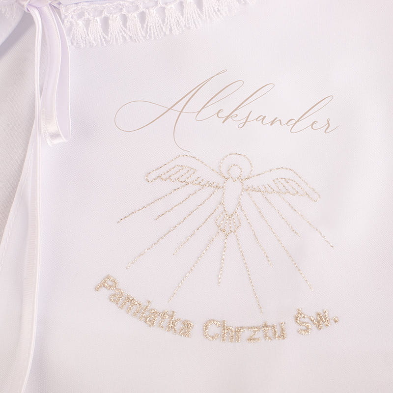 - uniwersalna część ozdobna: gołąbek i napis Pamiątka Chrztu Św. jest haftowana złotą nitką