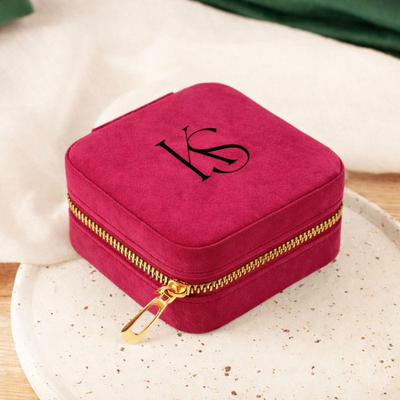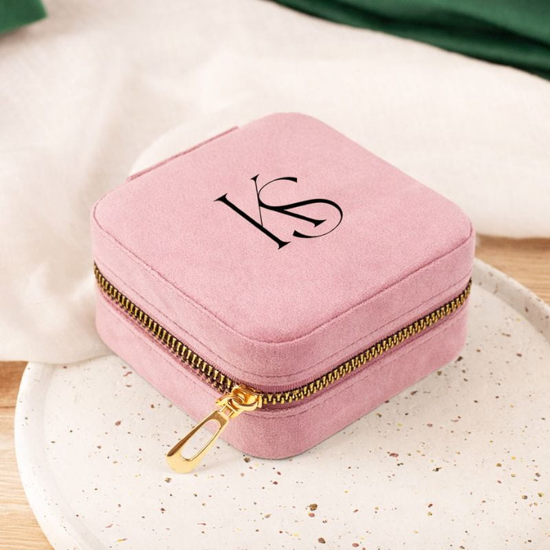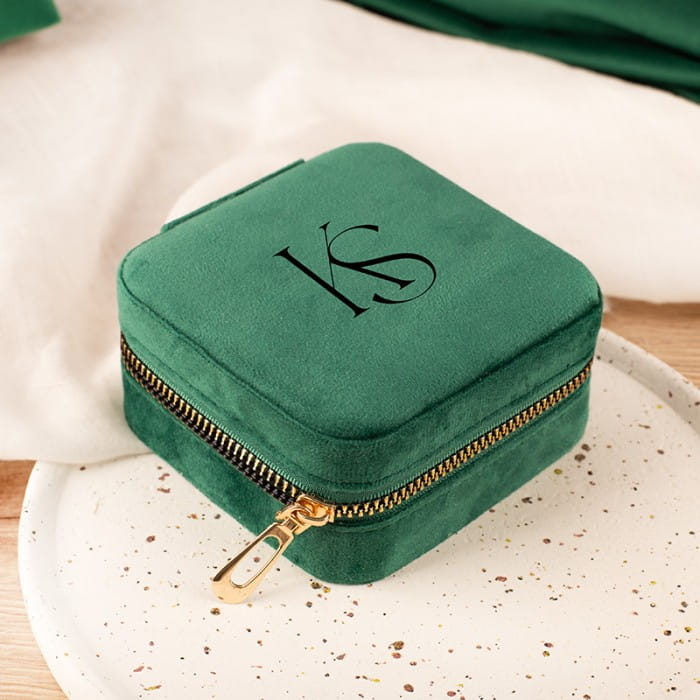 SZKATUŁKA Welurowa do Przechowywania Biżuterii z Inicjałami