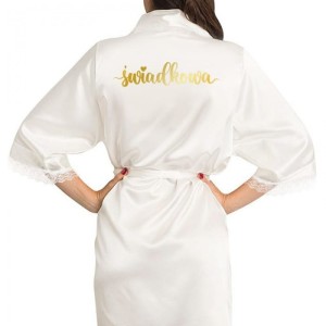 Ten elegancki biały szlafroczek wykonany jest z delikatnego materiału satynowego, co sprawia, że jest idealnym prezentem dla tak ważnej osoby. Na plecach szlafroka znajduje się złoty napis "świadkowa", wykonany ozdobną czcionką, nad którym unosi się urocze serduszko. To nie tylko napis czyni ten szlafrok wyjątkowym, ale także subtelny detal w postaci koronkowego wykończenia rękawów, który dodaje całości kobiecego charakteru.