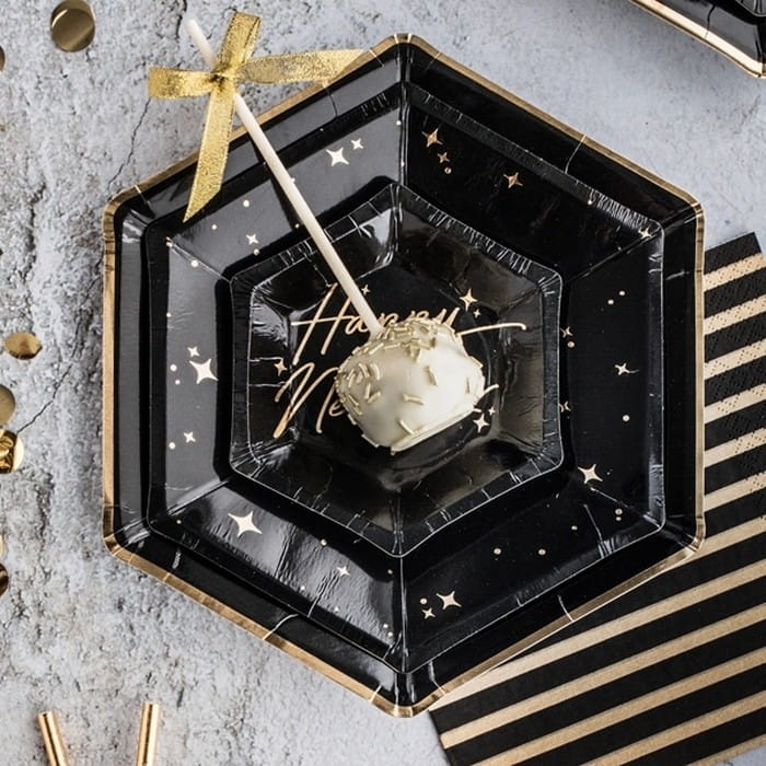 TALERZYKI papierowe Hexagon 6szt 23cm CZARNO-ZŁOTE