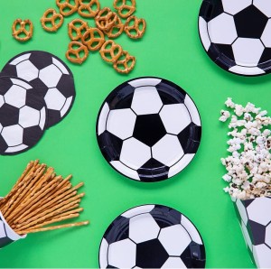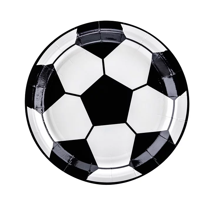 Talerzyki wykonano z sztywnego, trwałego papieru. Ich klasyczny, okrągły kształt nawiązuje do wyglądu piłki futbolowej – białe i czarne segmenty odwzorowano z dużą dokładnością. Każdy komplet zawiera 6 talerzyków, co pozwala szybko i sprawnie przygotować stół dla kilku uczestników.