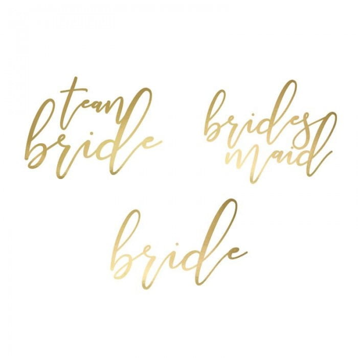 Produkt dostępny na naszej stronie internetowej to zestaw unikatowych tatuaży, które z powodzeniem nakleicie sobie podczas wspólnej zabawy. W opakowaniu znajduje się 13 sztuk różnych napisów nawiązujących do panieńskiego składu dziewczyn. Wśród propozycji znajdziesz „Team bride”, „brides mind” oraz „bride”. Wszystkie wykonane są w kolorze złota, a ich charakterystycznym punktem jest ozdobna czcionka. Wszystkie naklejki umieścicie na skórze jedynie przy pomocy wody. Produkt można z łatwością usunąć. Wykorzystaj nietuzinkową ozdobę i zaskocz wszystkich. Niech porwie was ostatnia noc wolności. Zadbajcie z pozostałymi przyjaciółkami o spójną kolorystykę, aby wyglądać perfekcyjnie na pamiątkowych zdjęciach