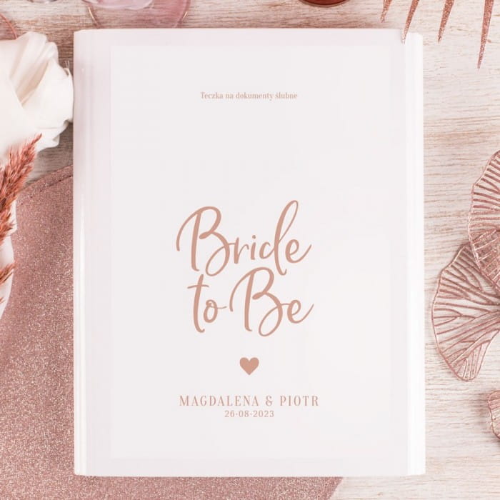 - Teczka została wykonana z solidnego, sztywnego materiału. Dzięki temu dobrze zabezpieczy zebrane wewnątrz dokumenty. Jest dostępna w kolorze białym i różowym do wyboru. Na froncie znajduje się naklejka z grafiką Bride to Be oraz personalizacją. Pod grafiką umieścimy imiona pary młodej oraz datę ślubu. Teczka ma format A4, co czyni z niej praktyczne, a jednocześnie wyjątkowo estetyczne rozwiązanie. Teczka na dokumenty ślubne z kolekcji Bride to Be pozwoli zebrać w jednym miejscu wszystkie najważniejsze umowy i faktury dotyczące tego szczególnego dnia. Jest duża i pojemna, dzięki czemu z powodzeniem można zacząć jej używać na wiele miesięcy przed ceremonią. Na okładce znajduje się ozdobna etykieta z personalizacją. To idealny pomysł na prezent dla przyszłej panny młodej, ale też coś, co warto sprawić sobie samej dla ułatwienia organizacji.