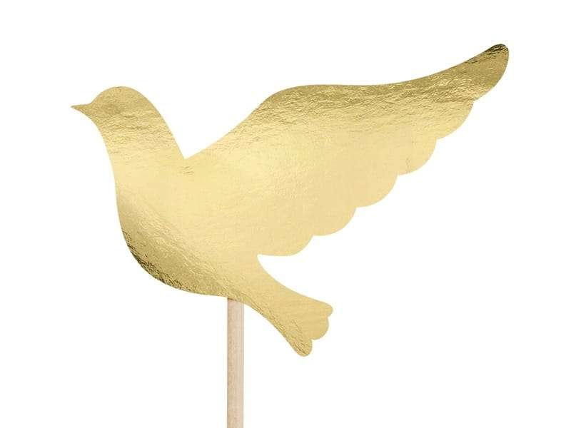 W zestawie znajduje się 6 topperów wykonanych z papieru w kolorze złotym, osadzonych na drewnianych patyczkach. Trzy motywy – krzyż, gołębica i kielich komunijny – zostały starannie wycięte i zaprojektowane z dbałością o detale. Złote wykończenie ma lekko błyszczący charakter, co nadaje dekoracji elegancji i sprawia, że toppery dobrze prezentują się zarówno w świetle dziennym, jak i sztucznym. Toppery komunijne złote na tort są lekkie, bezpieczne i łatwe w użyciu – wystarczy je delikatnie wbić w ciasto lub deser.