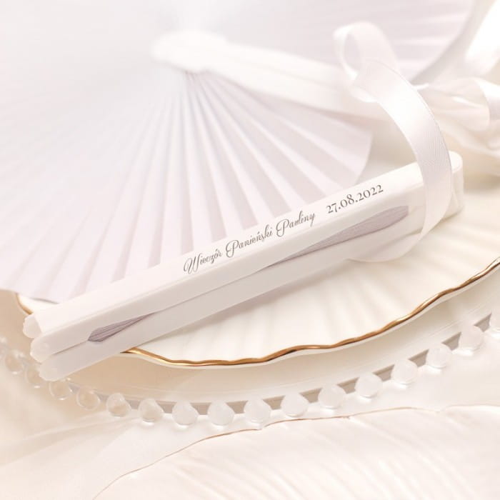 - Wachlarze z personalizacją mogą być nie tylko niespodzianką od panny młodej dla dziewczyn, ale i na odwrót. Przyszła panna młoda będzie mile zaskoczona, gdy specjalnie na jej imprezę panieńską przyszykujecie dodatki w stylu wachlarza z jej grawerowanym imieniem.
