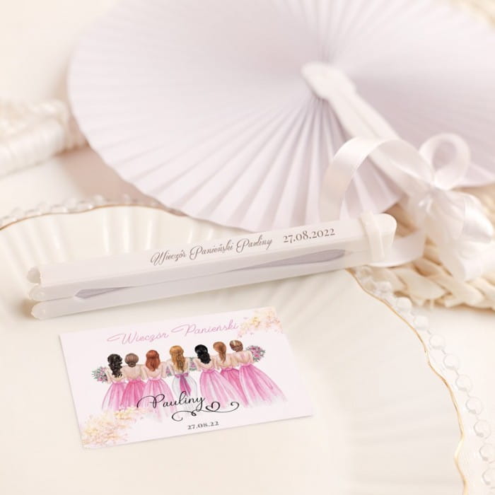 - Personalizowany wachlarz z datą imprezy i imieniem przyszłej panny młodej to oryginalny pomysł na upominek dla dziewczyn, zwłaszcza gdy impreza odbywa się latem. Babski wypad nad morze? Wyjazd do domku letniskowego w góry? W upalne dni wachlarzyk pozwoli Wam poczuć ulgę, zwłaszcza w najcieplejszych godzinach dnia. Dziewczyny będą miło zaskoczone, gdy dostaną wachlarze z imieniem przyszłej panny młodej.