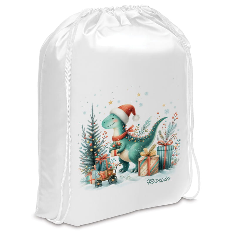 Imienny worek na prezenty dla fana dinozaurów to świąteczne opakowanie stworzone specjalnie z myślą o dzieciach, które z zapartym tchem wyczekują pojawienia się świętego Mikołaja. Idealny dla chłopców pasjonujących się dinozaurami, ten worek łączy zimową atmosferę z dziecięcą wyobraźnią i fascynacją prehistorią. To funkcjonalne i efektowne rozwiązanie, które wprowadza element magii do świątecznych przygotowań.