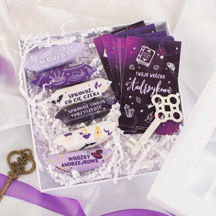 Obdaruj siebie i swoich najbliższych odrobiną magii oraz smaku, aby cieszyć się wyjątkowym wieczorem andrzejkowym. Super Zestaw Klucz, krówki i zdrapki z wróżbami sprawi, że Twoje Andrzejki będą pełne radości i zaskoczenia, a każdy gość z pewnością będzie miał niezapomniane wspomnienia. Przygotuj się na wieczór pełen zabawy, emocji i odkryć, który pozostanie w pamięci na długo!