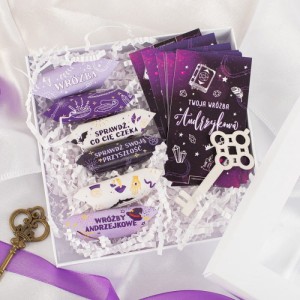 Każdy element zestawu został starannie dobrany, aby zapewnić wyjątkowe doświadczenie. Klucz do wróżb wprowadza do zabawy element tajemniczości, a krówki z pewnością zaspokoją apetyt na słodkości. Zdrapki z wróżbami stanowią świetny sposób na interakcję i rywalizację między gośćmi, co sprawia, że każda gra staje się jeszcze bardziej ekscytująca. To idealny zestaw na spotkania z bliskimi oraz imprezy tematyczne, które pragną wprowadzić odrobinę wróżbiarskiej tradycji.